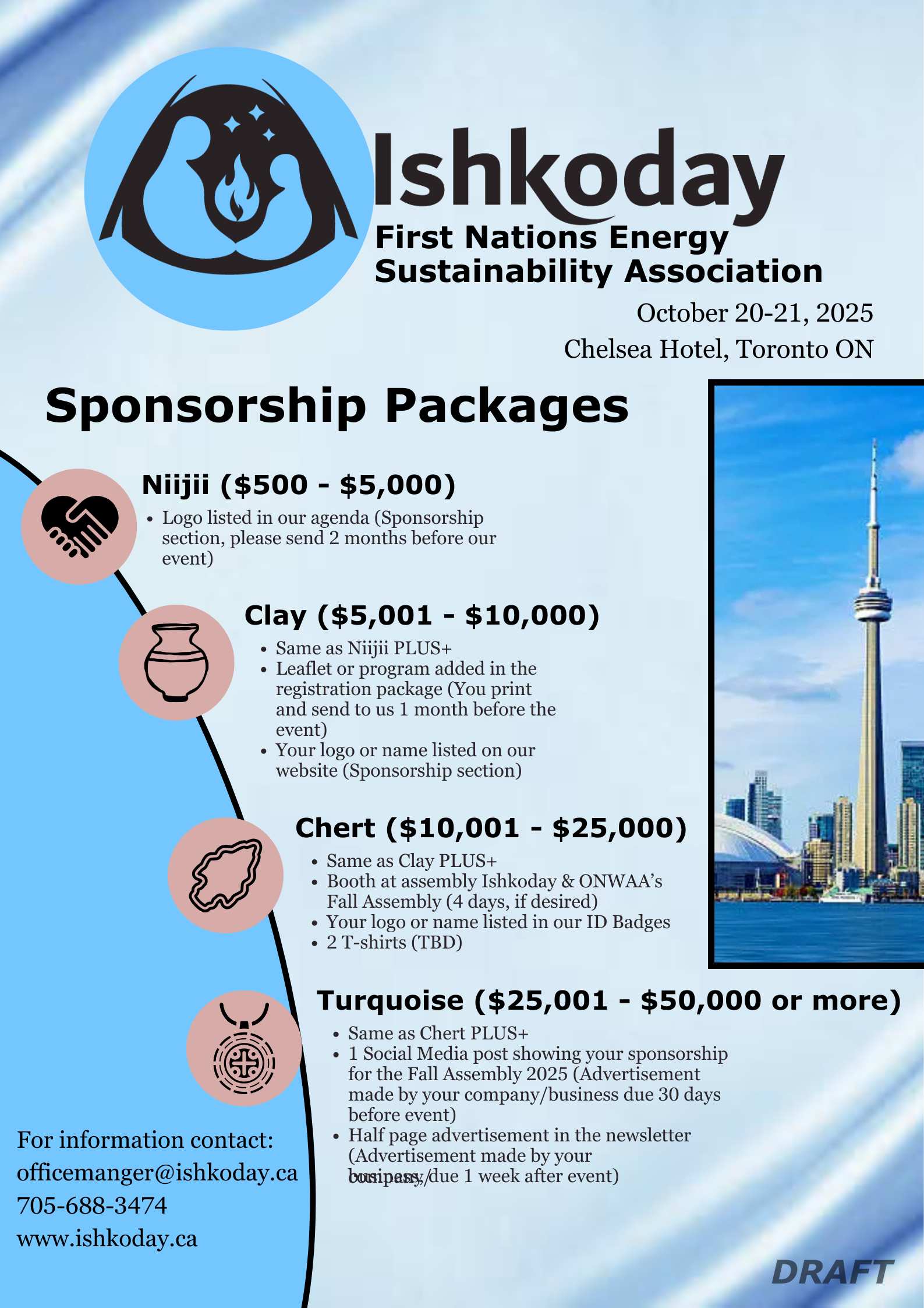 Please be advised we will be hosting the Ishkoday Assembly at the Chelsea Toronto, please save the dates.  Please keep your eyes open for more details.